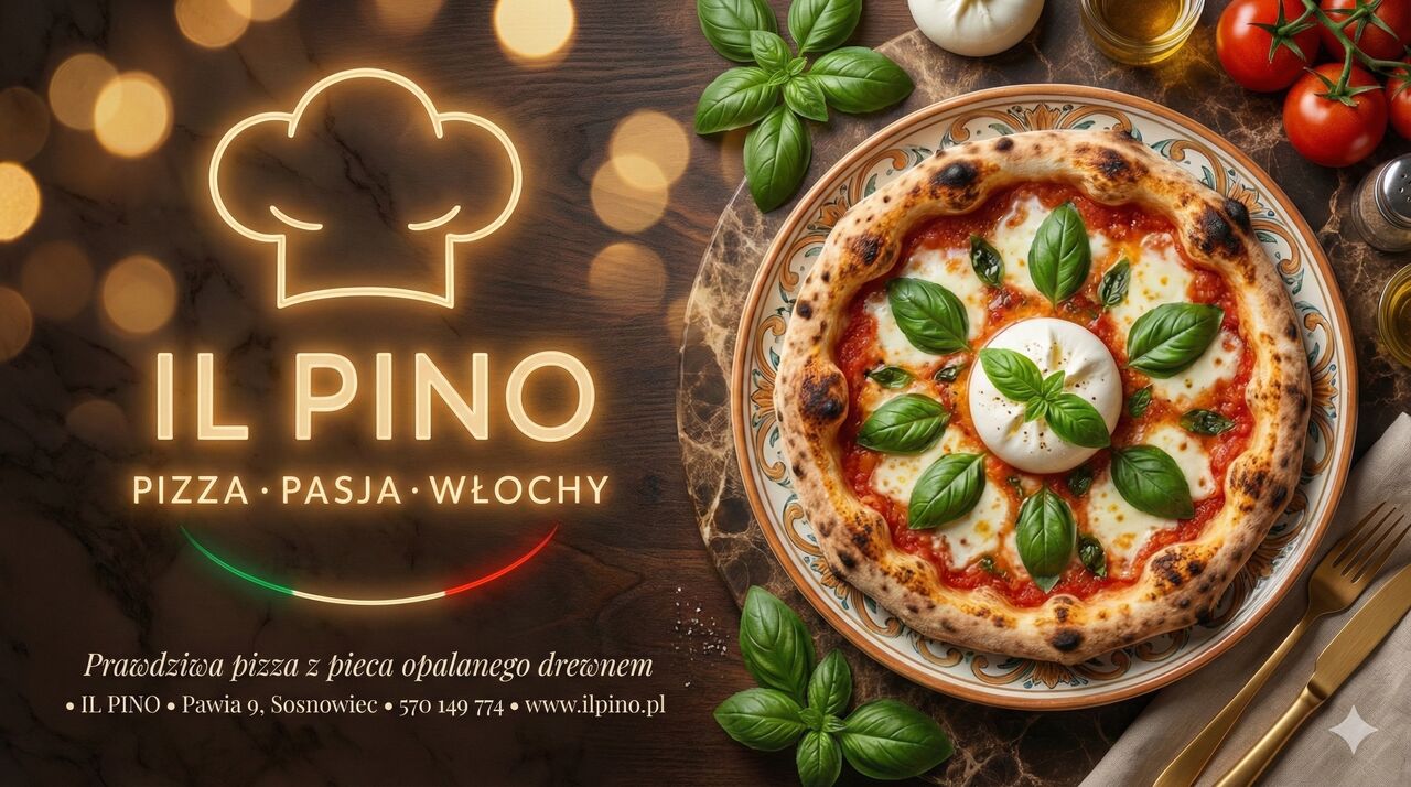 Od 2015 roku IL PINO to obowiązkowy punkt na kulinarnej mapie Sosnowca. Naszą pasją jest autentyczna włoska pizza wypiekana w piecu opalanym drewnem, przygotowywana na cienkim, chrupiącym cieście według oryginalnej receptury. Korzystamy wyłącznie z wysokiej jakości składników, dzięki czemu każda pizza zachwyca smakiem i aromatem.